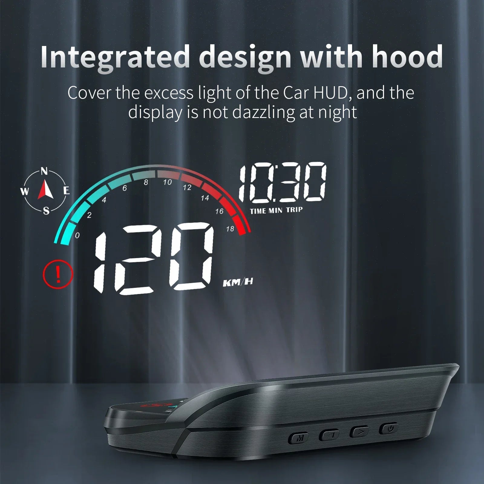 The AD M22 GPS HUD is a universal head-up display (HUD) designed to enhance driving safety and convenience. Featuring a GPS + Beidou dual-chip, it provides real-time speed, mileage, trip time, and compass direction with exceptional accuracy. The large, easy-to-read digital font ensures clear visibility, even in bright sunlight, thanks to the built-in sun hood.